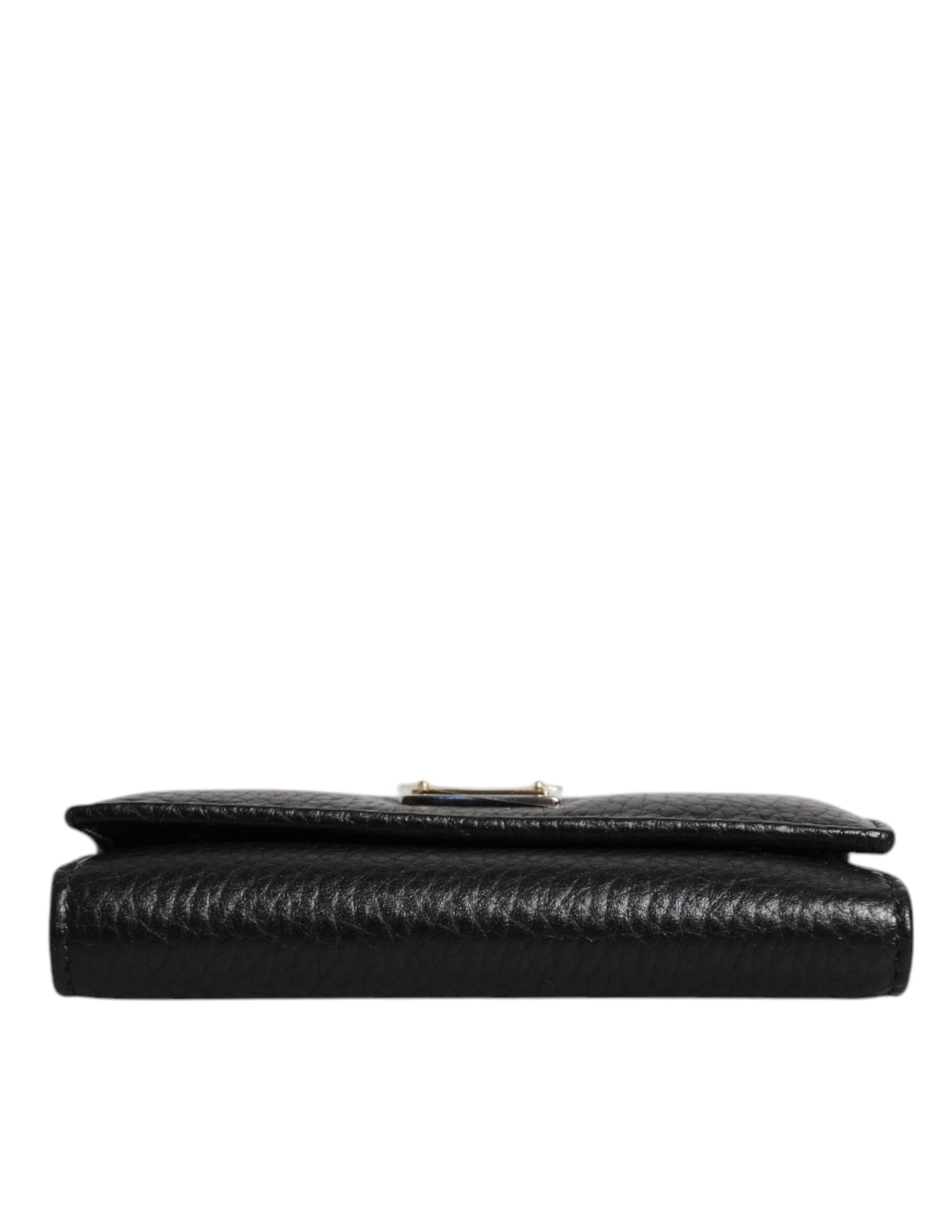 Dolce & Gabbana Black Leather Gold Metal Logo Plaque Trifold Keyring