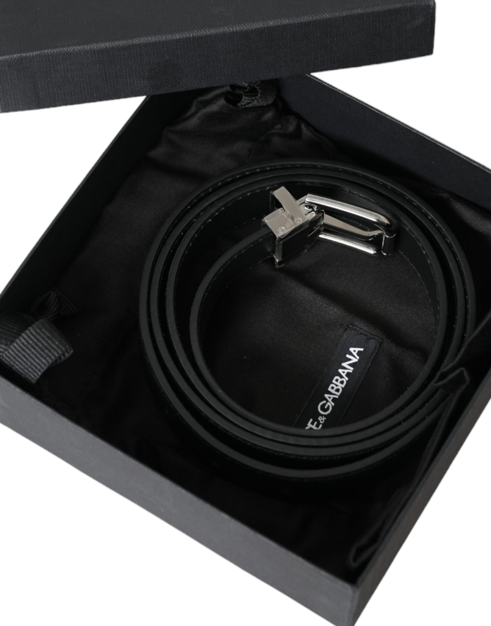 Dolce & Gabbana Black Leather Silver Metal Buckle Men Belt
