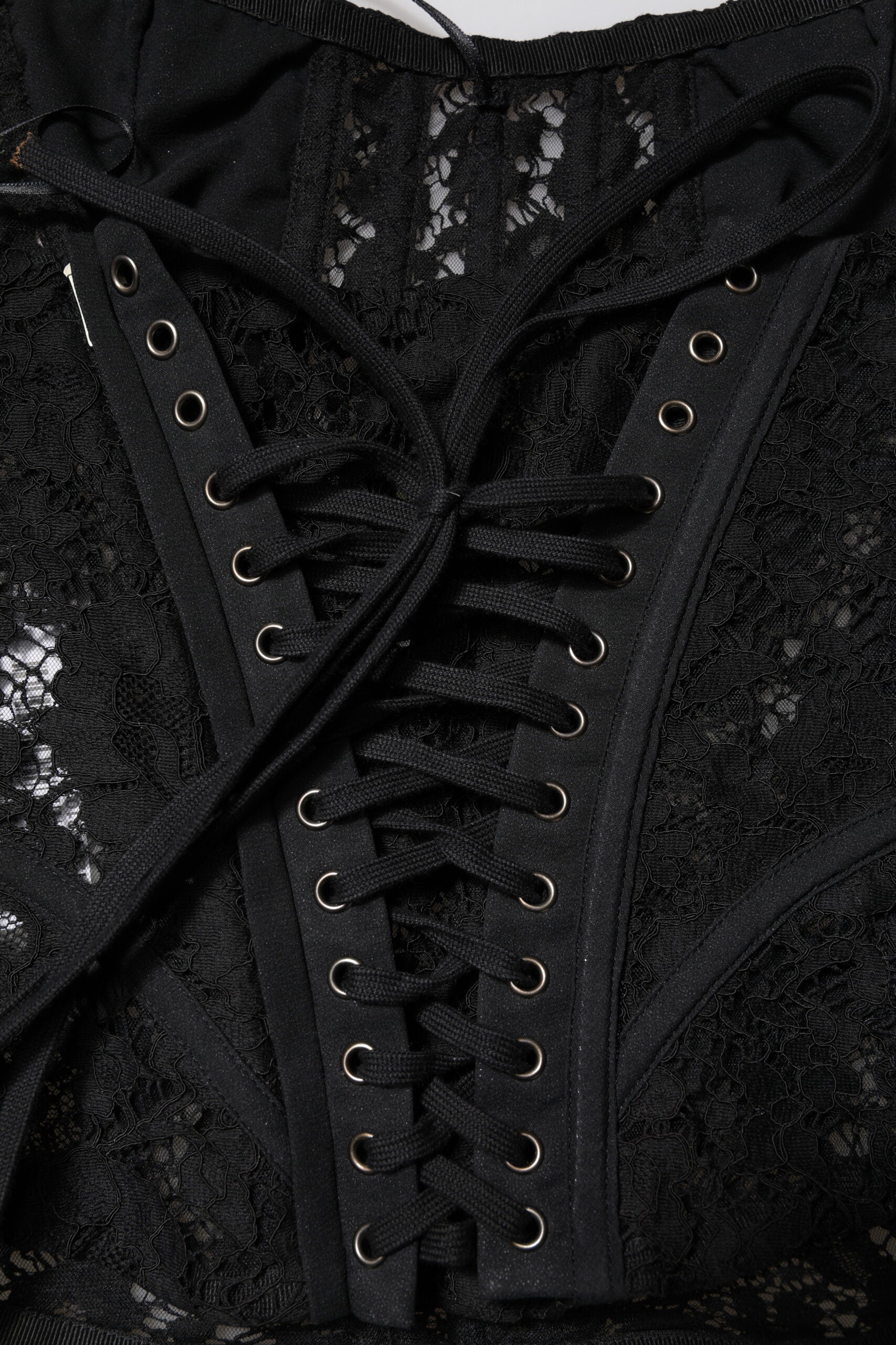 Dolce & Gabbana Black Strapless Floral Lace Bustier Cropped Top