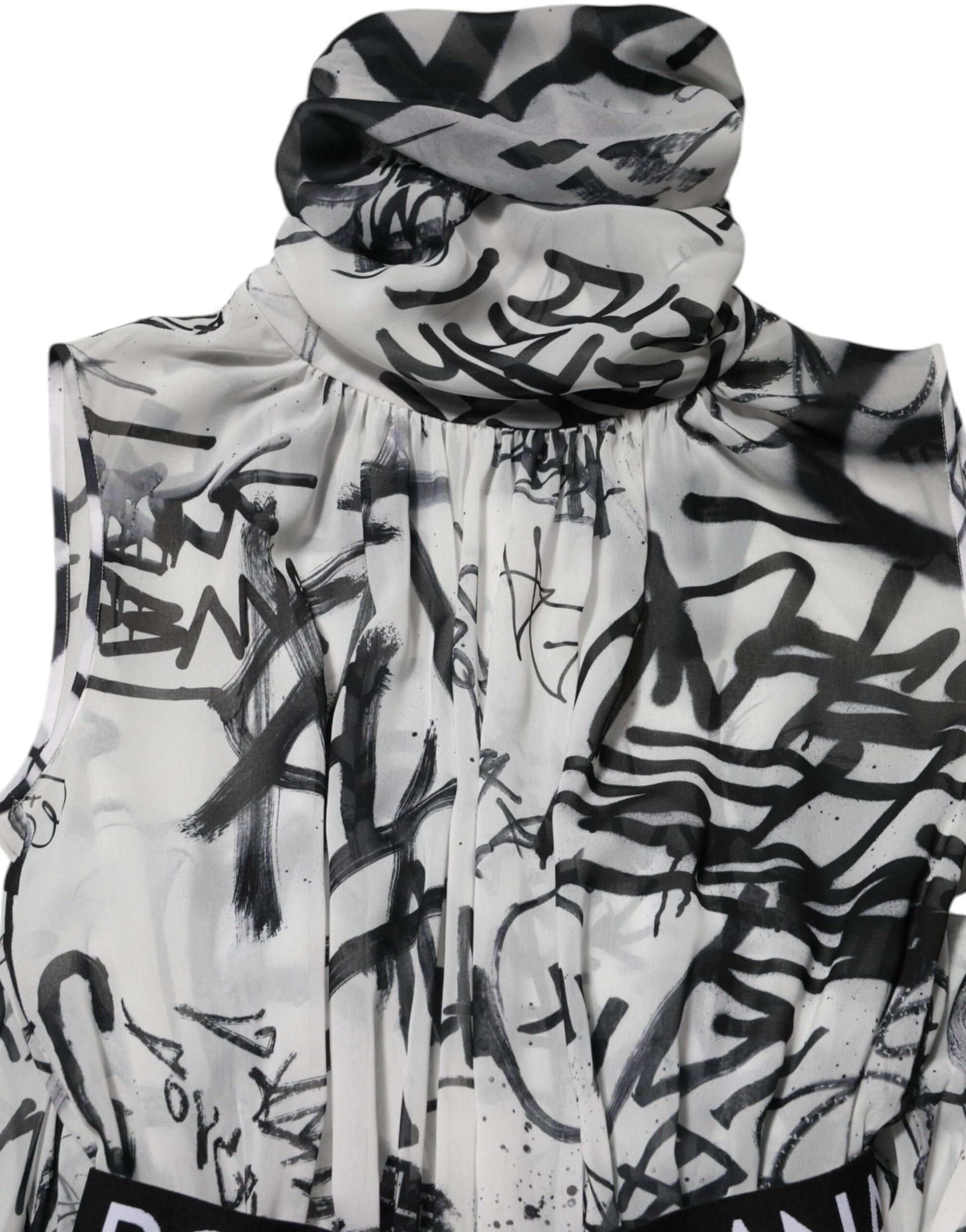 Dolce & Gabbana Black White Monogram Pleated Long Gown Dress