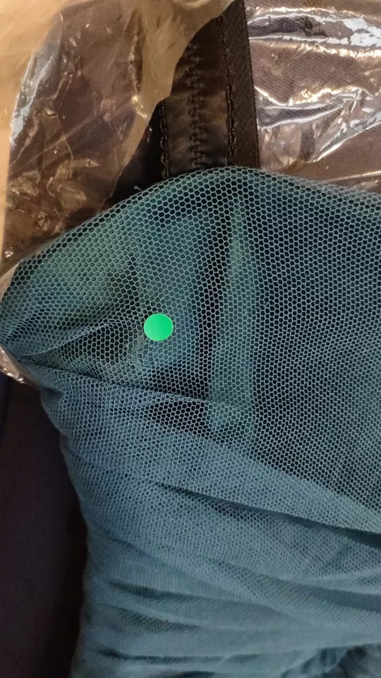 This item has a very minor defect, there is a tiny pull in the fabric on the front left chest area (see pictures for details).