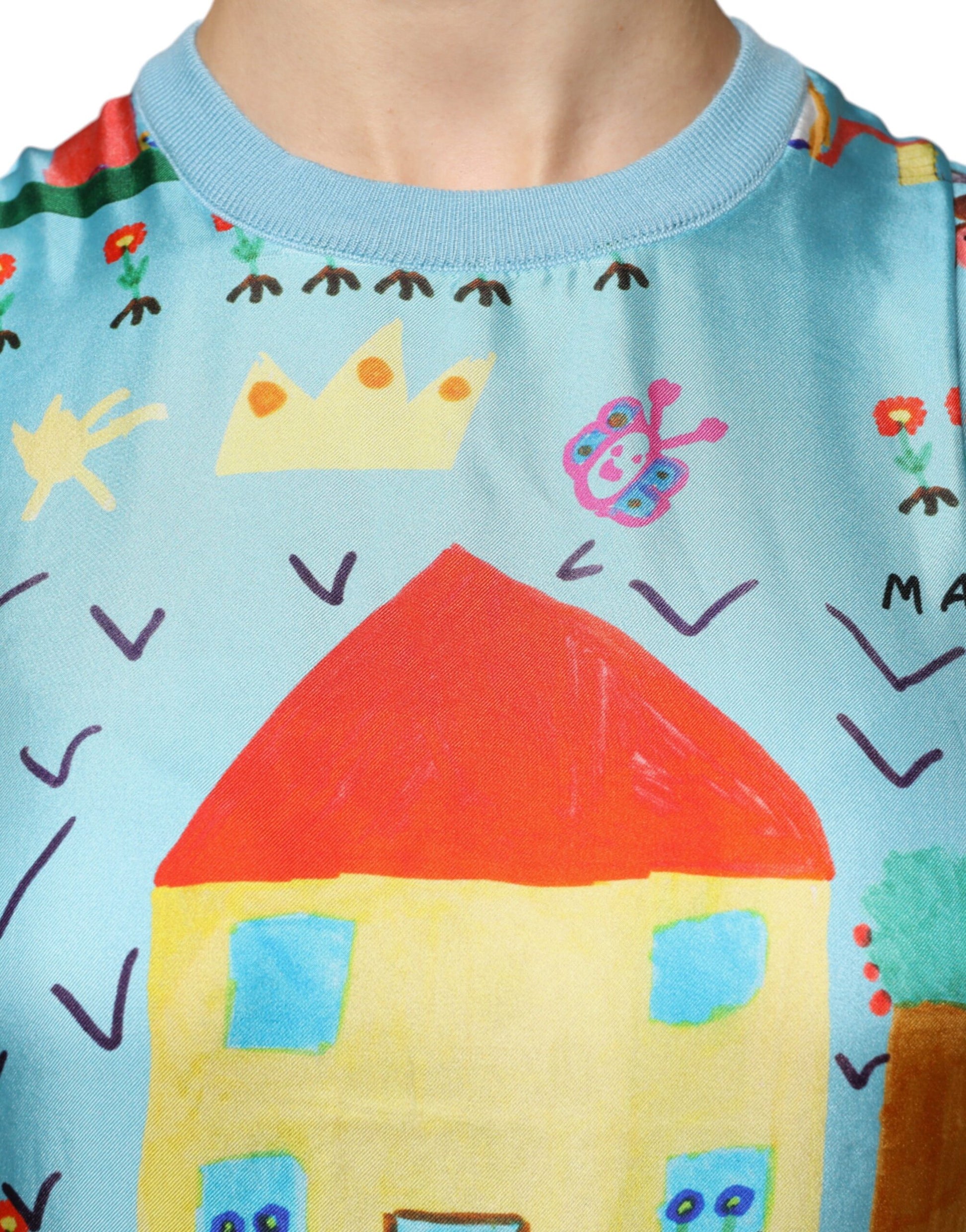 Dolce & Gabbana Blue Drawing Cashmere Sleeveless Tank Top