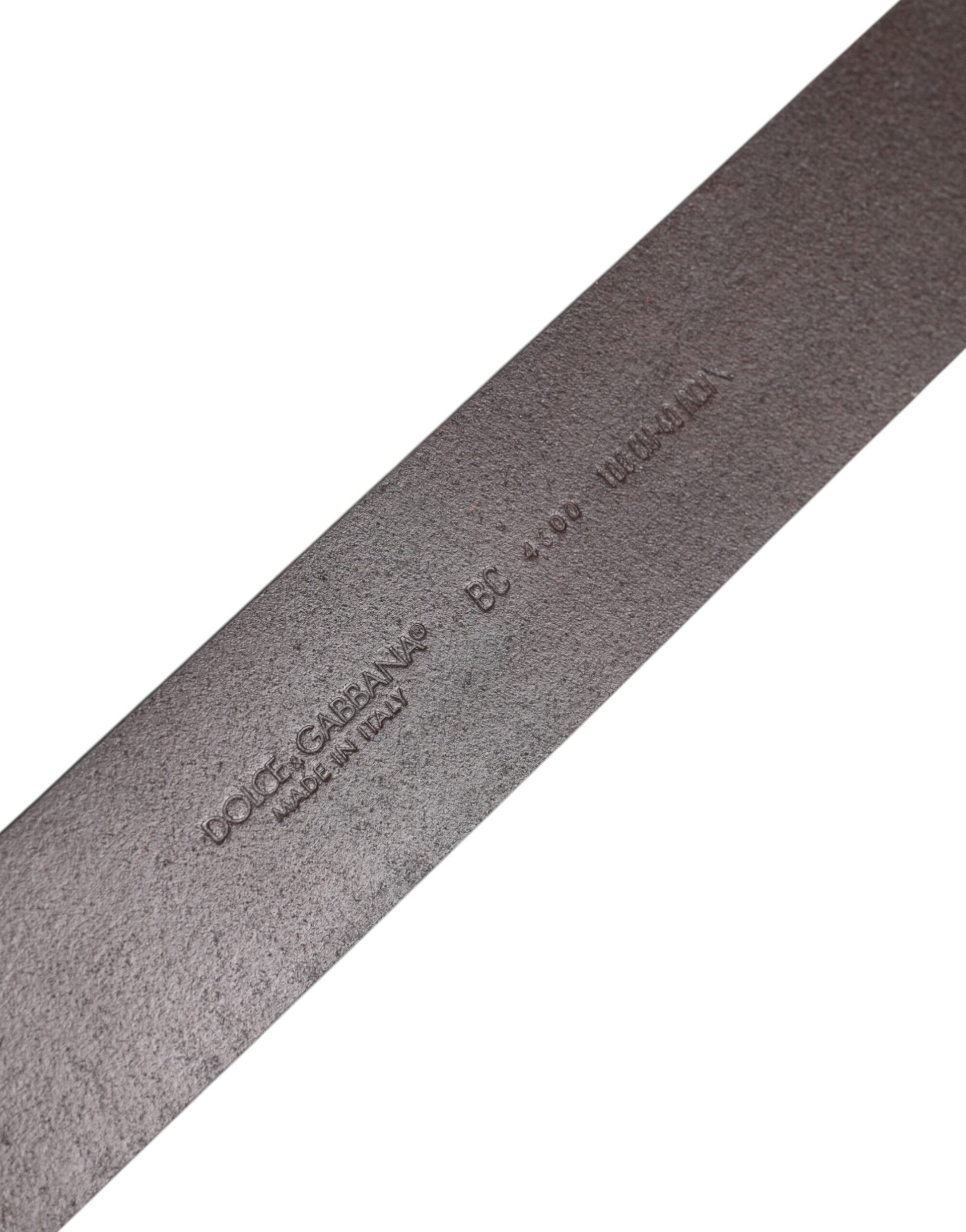 This luxurious piece is crafted from smooth brown leather and features an ornate baroque-style DG logo buckle in antique gold-tone metal, adding a bold statement to any outfit.