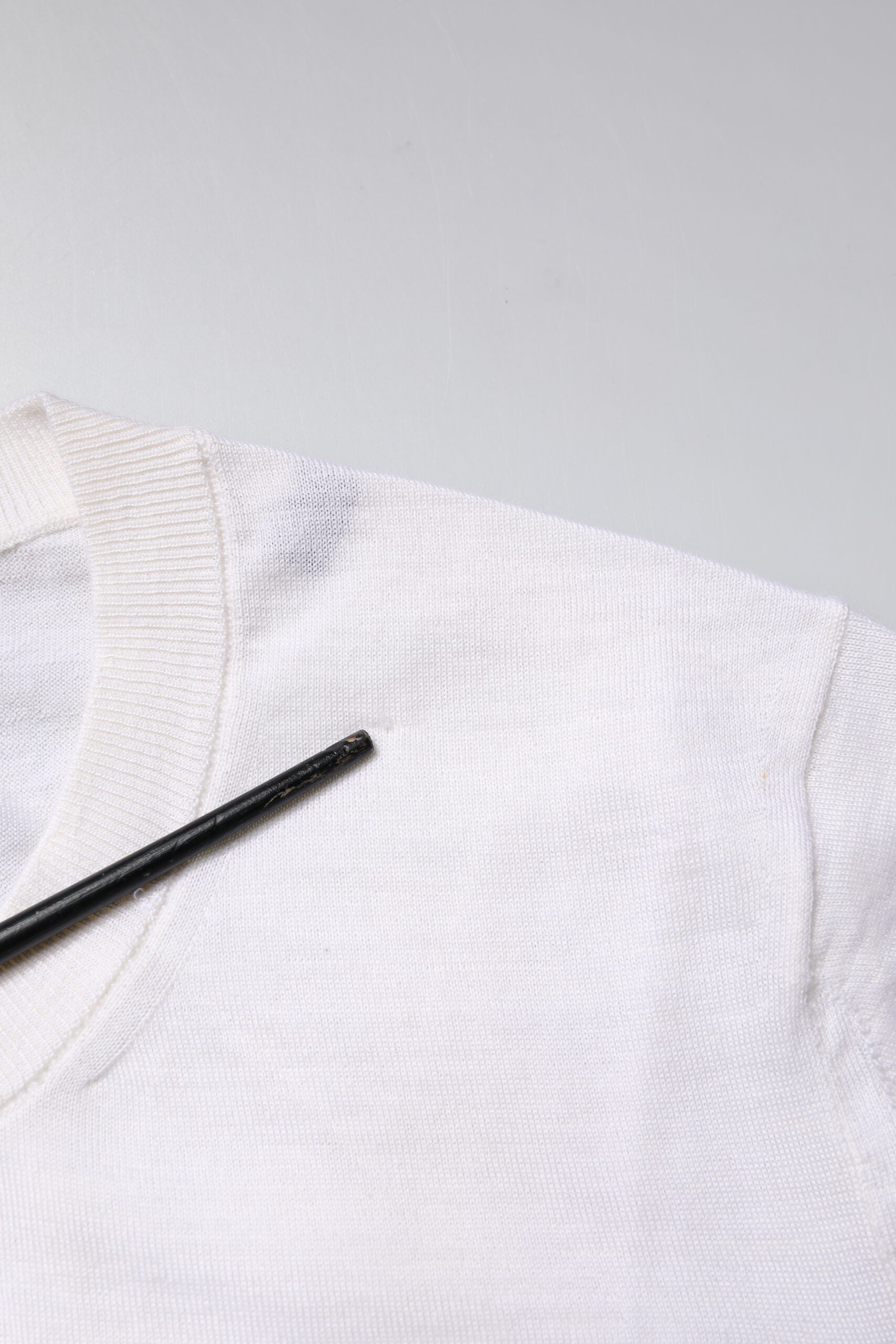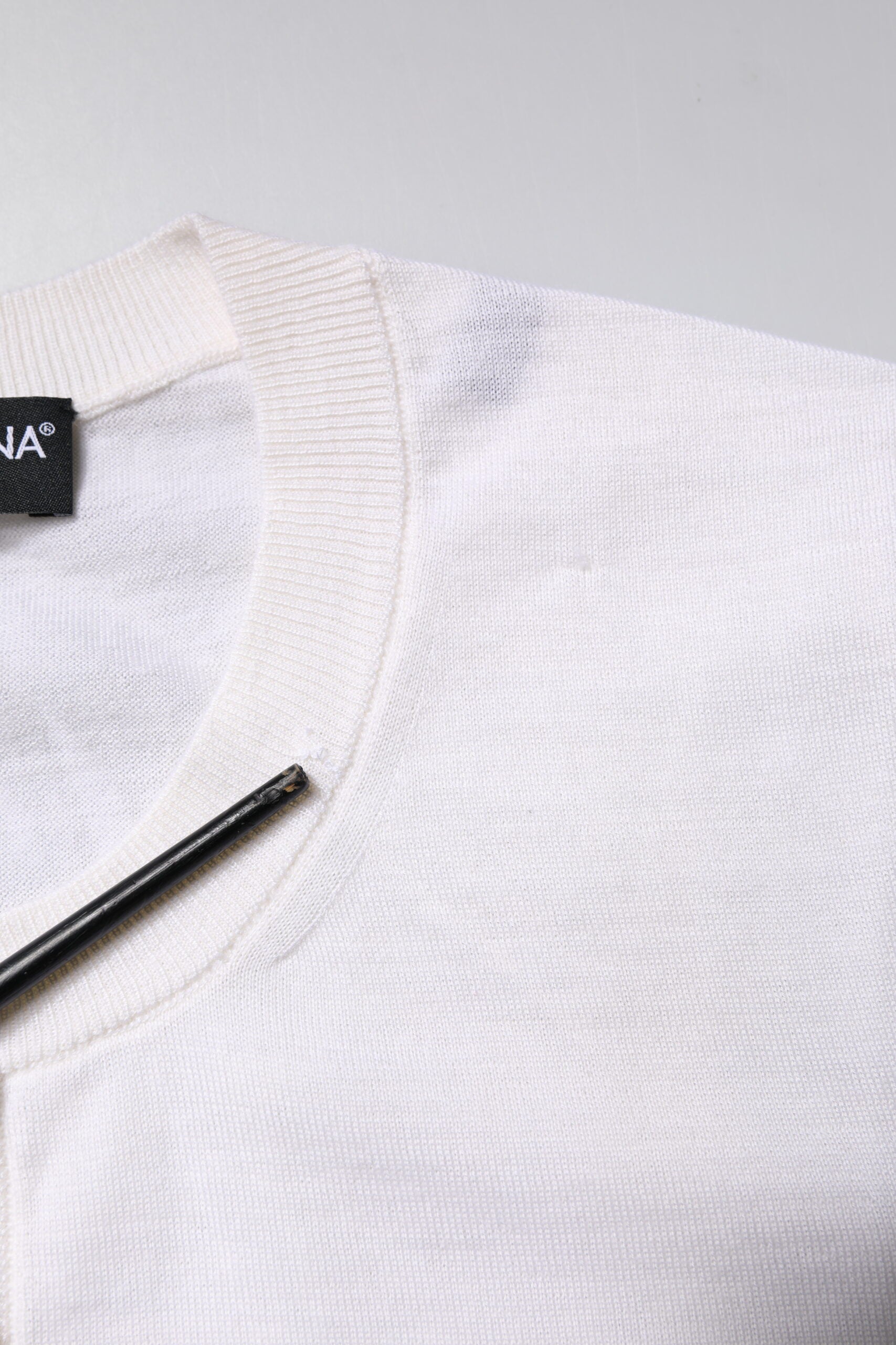 This item has a minor defect, there are repaired holes, pulled threads and stains on the front side (see pictures for details).