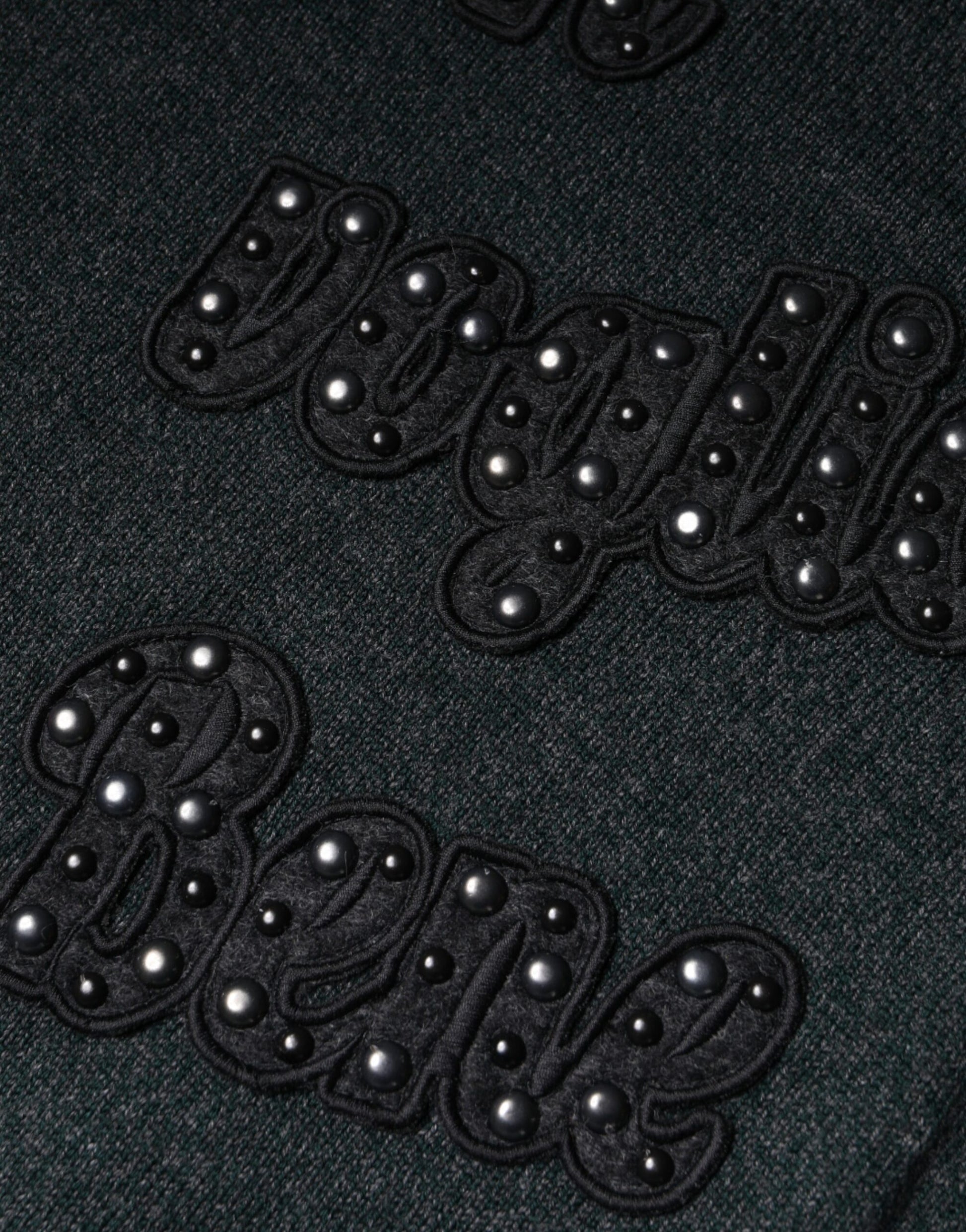 Dolce & Gabbana Gray Embellished Crew Neck Pullover Sweater