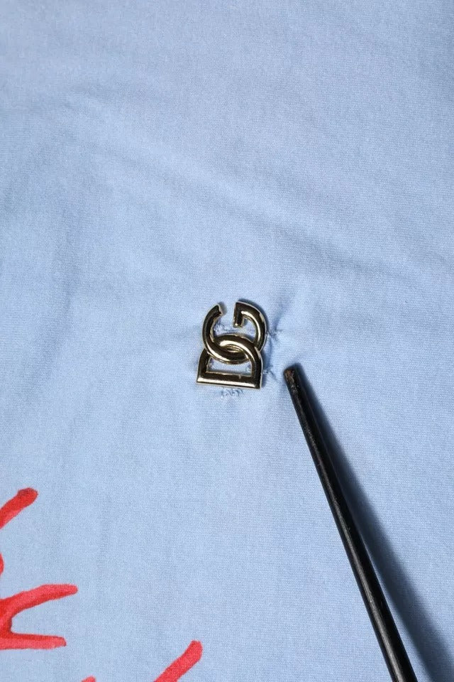 Dolce & Gabbana Light Blue Coral Cotton Men Crew Neck T-shirt