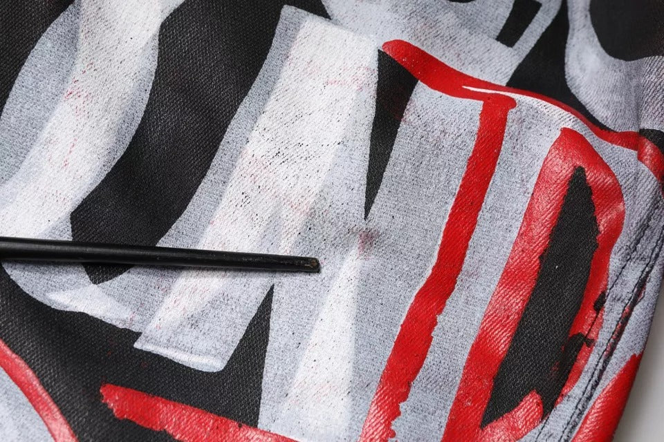 This item has a minor defect, the print is sticky and peels on the color all over the jeans (see pictures for details).