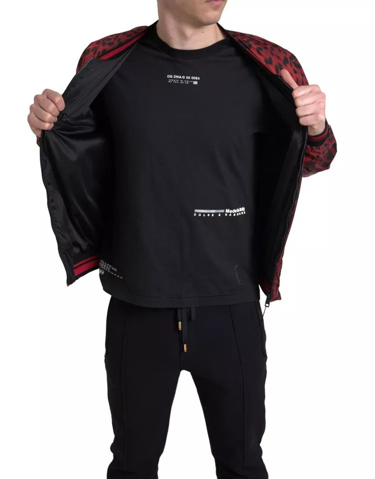 Dolce & Gabbana Red Leopard Bomber Short Coat Jacket