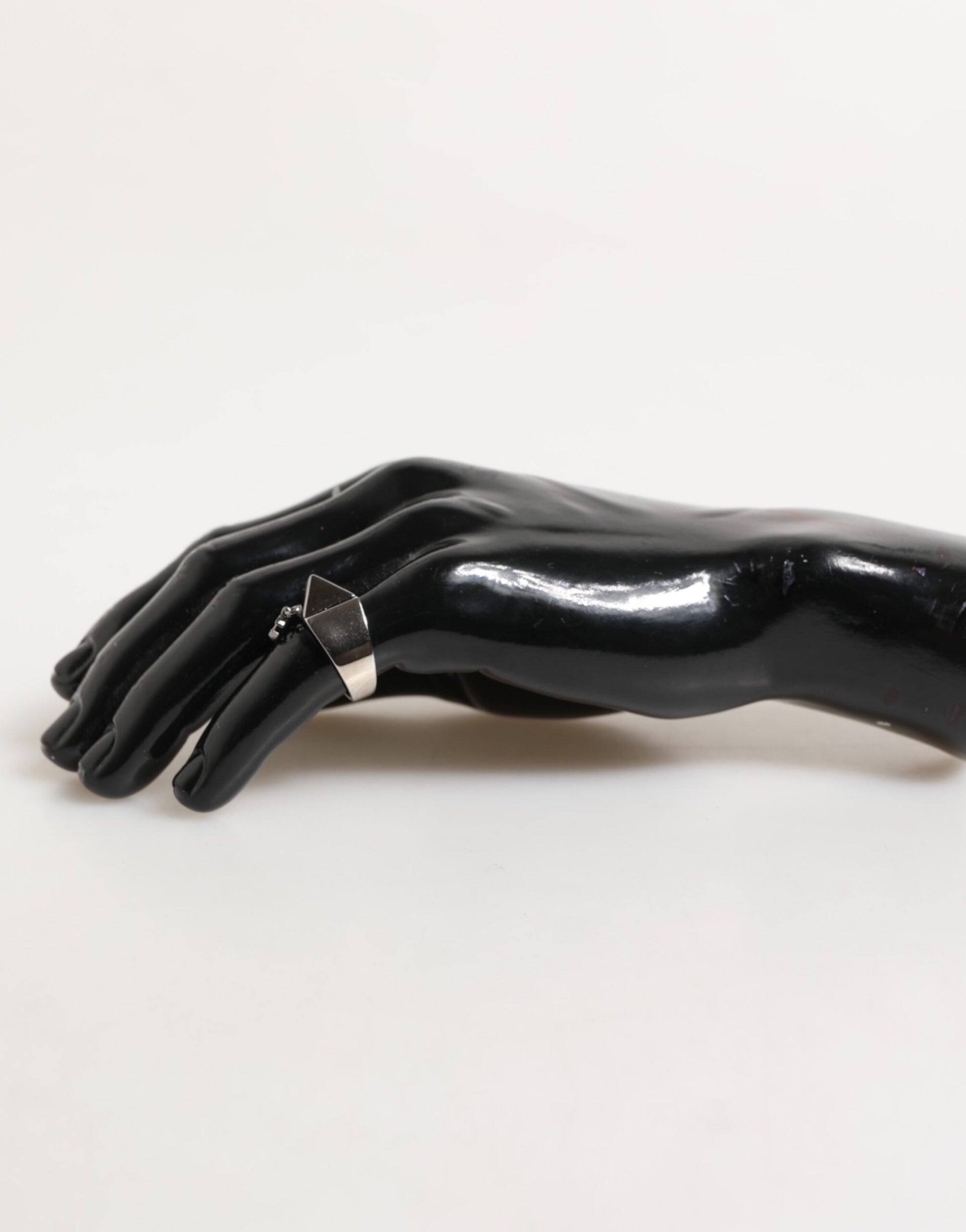 Dolce & Gabbana Silver Tone Pyramid DG Logo Real Brass Ring