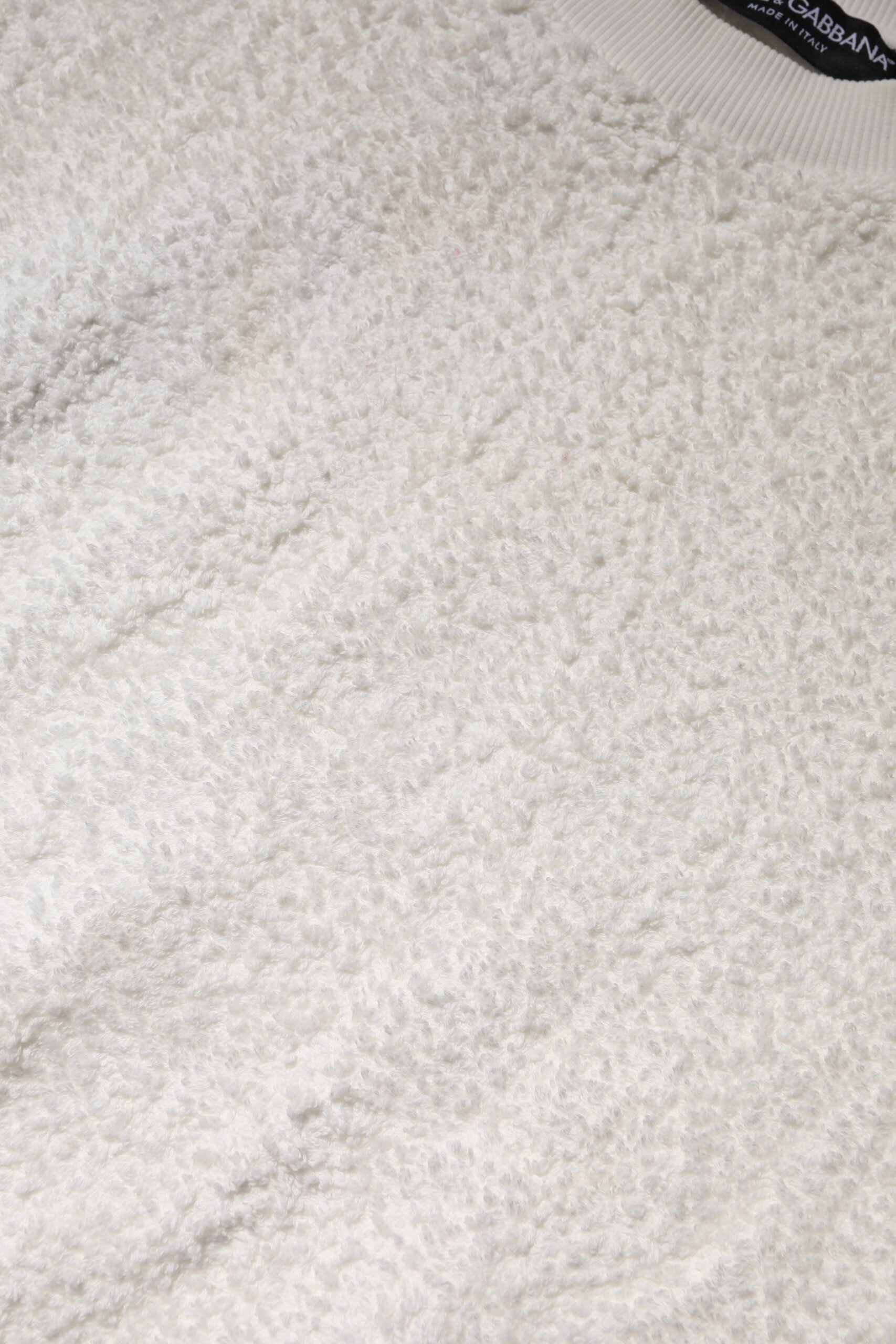 Dolce & Gabbana White Cotton Fleece Crew Neck Sweater