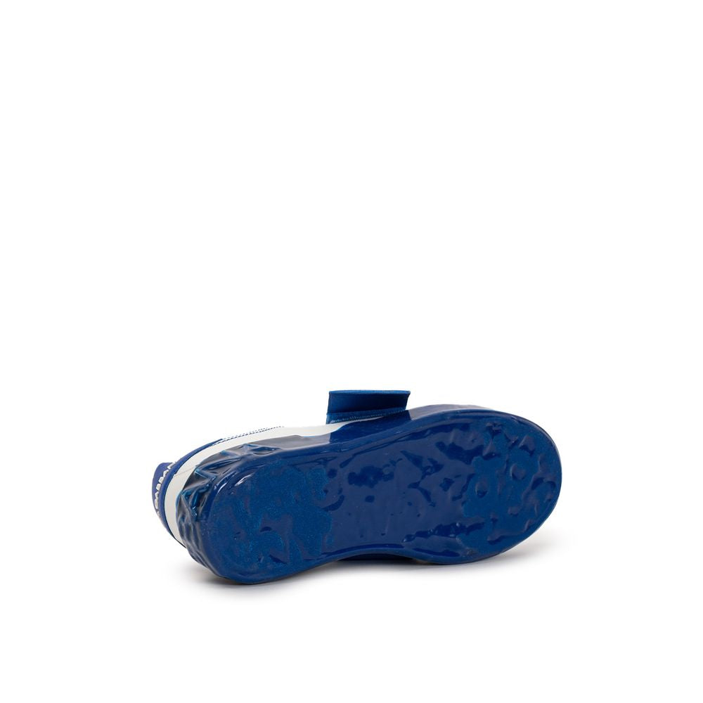 Dolce & Gabbana Low-Top Sneakers. In white and blue, front lacing with mega strap with contrasting printed logo and laces, rubber-coated outer sole with a cast effect. Logo tag on the tongue and tone-on-tone print on the back