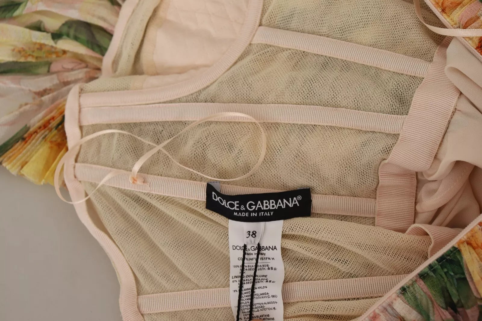 Dolce & Gabbana Yellow Floral Print Pleated Maxi Dress