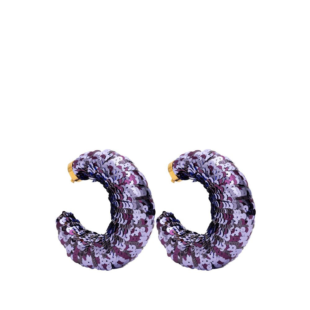 Tom Ford Croissant Hoop Earrings with Sequins. In purple, light structure covered with sequins, clip closure in 18kt gold-plated brass, nickel-free.